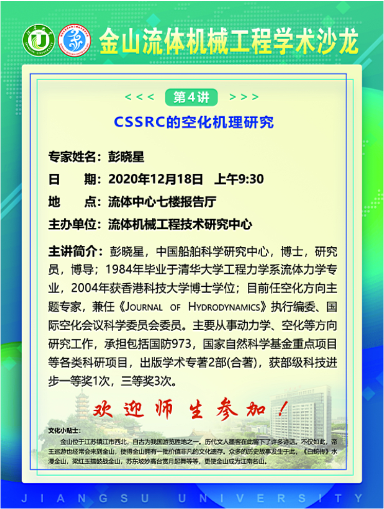 金山流体机械工程学术沙龙(第4讲):CSSRC的空化机理研究
