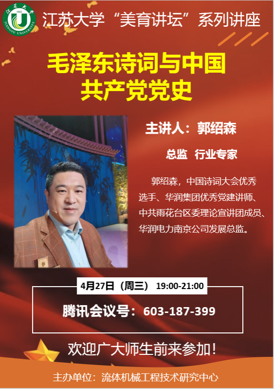 江苏大学“美育讲坛”系列讲座--毛泽东诗词与中国共产党党史