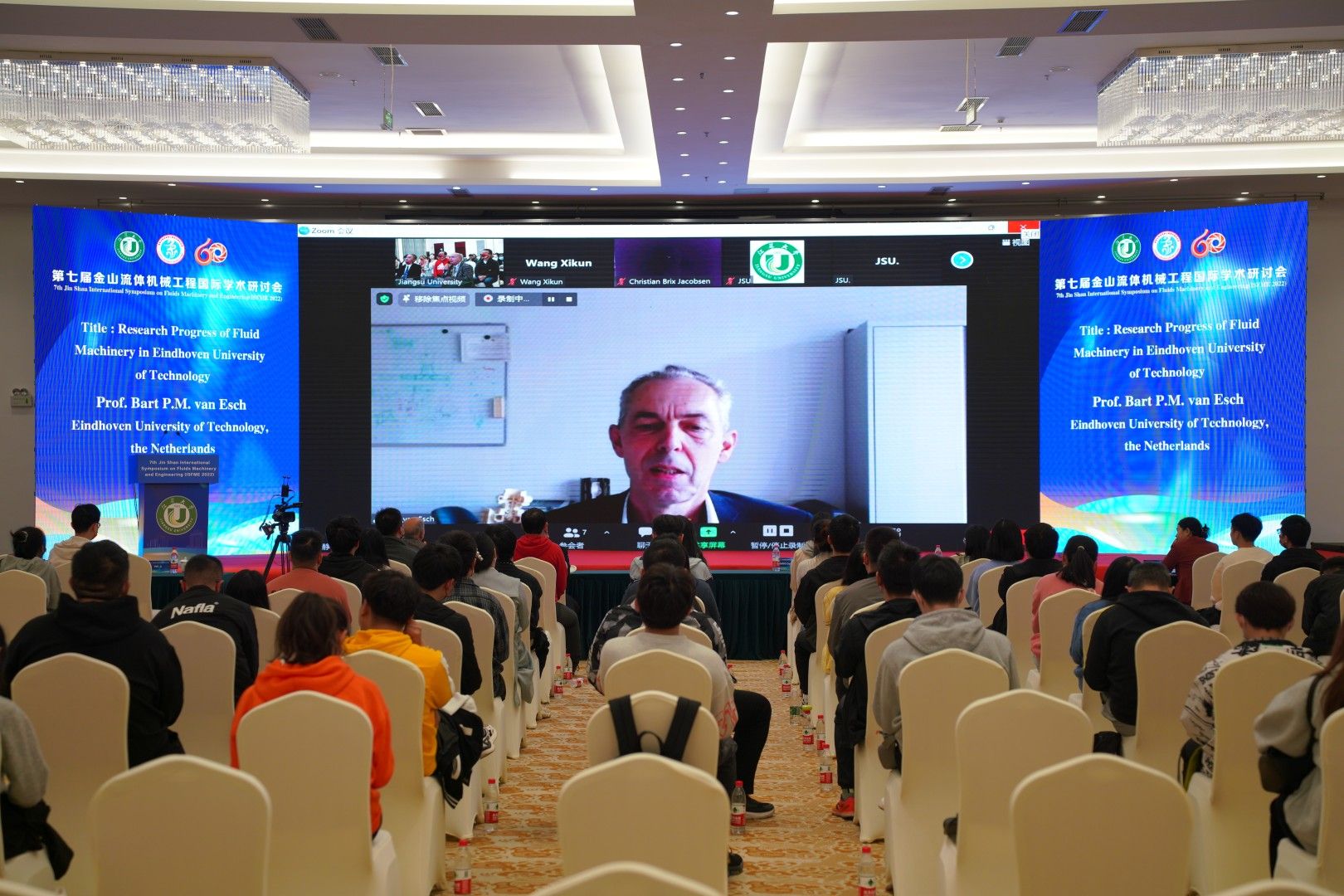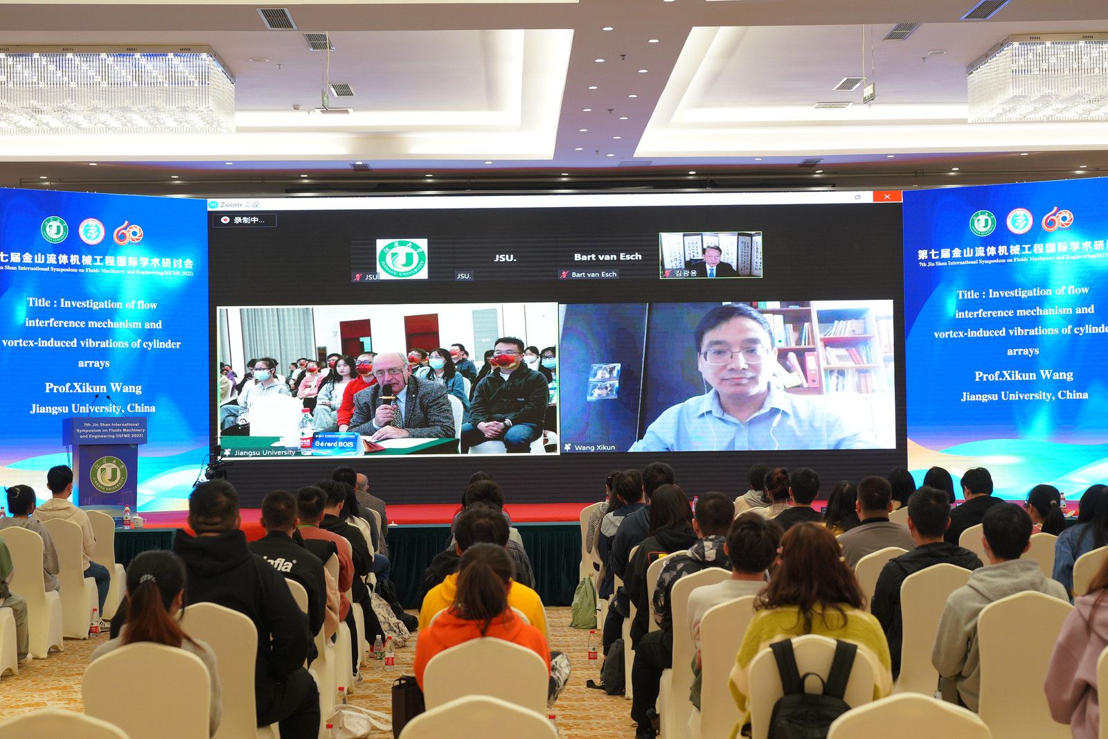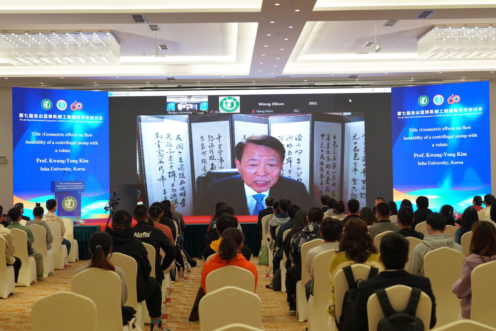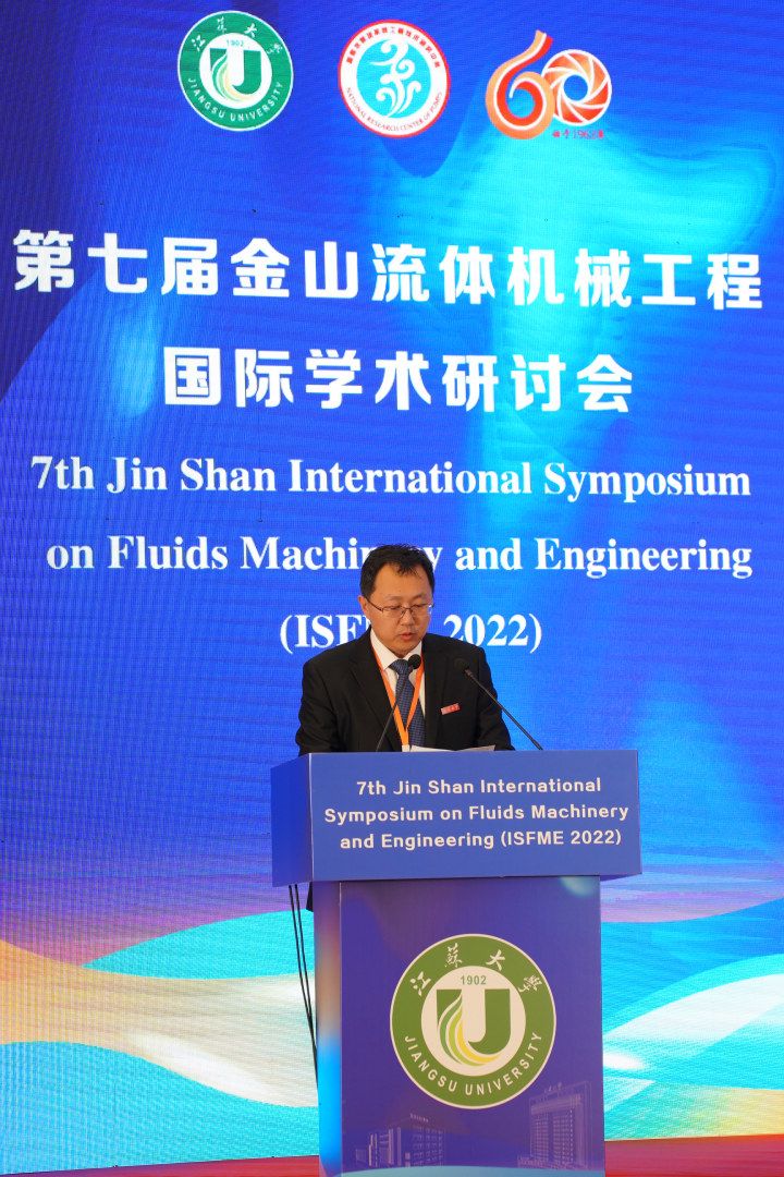 On October 29, the 7th Jinshan International Symposium on Fluid Mechanical Engineering was held in Jiangsu University. The conference was held in full English. Famous experts, scholars, researchers and student representatives at home and abroad were invited to participate in the seminar online and offline. Yuan Shouqi, Secretary of the Party Committee of Jiangsu University and director of the National Research Center of Pumps, attended the opening ceremony and delivered a speech on behalf of Jiangsu University. The meeting was hosted by Pei Ji, deputy director of the Fluid Center.