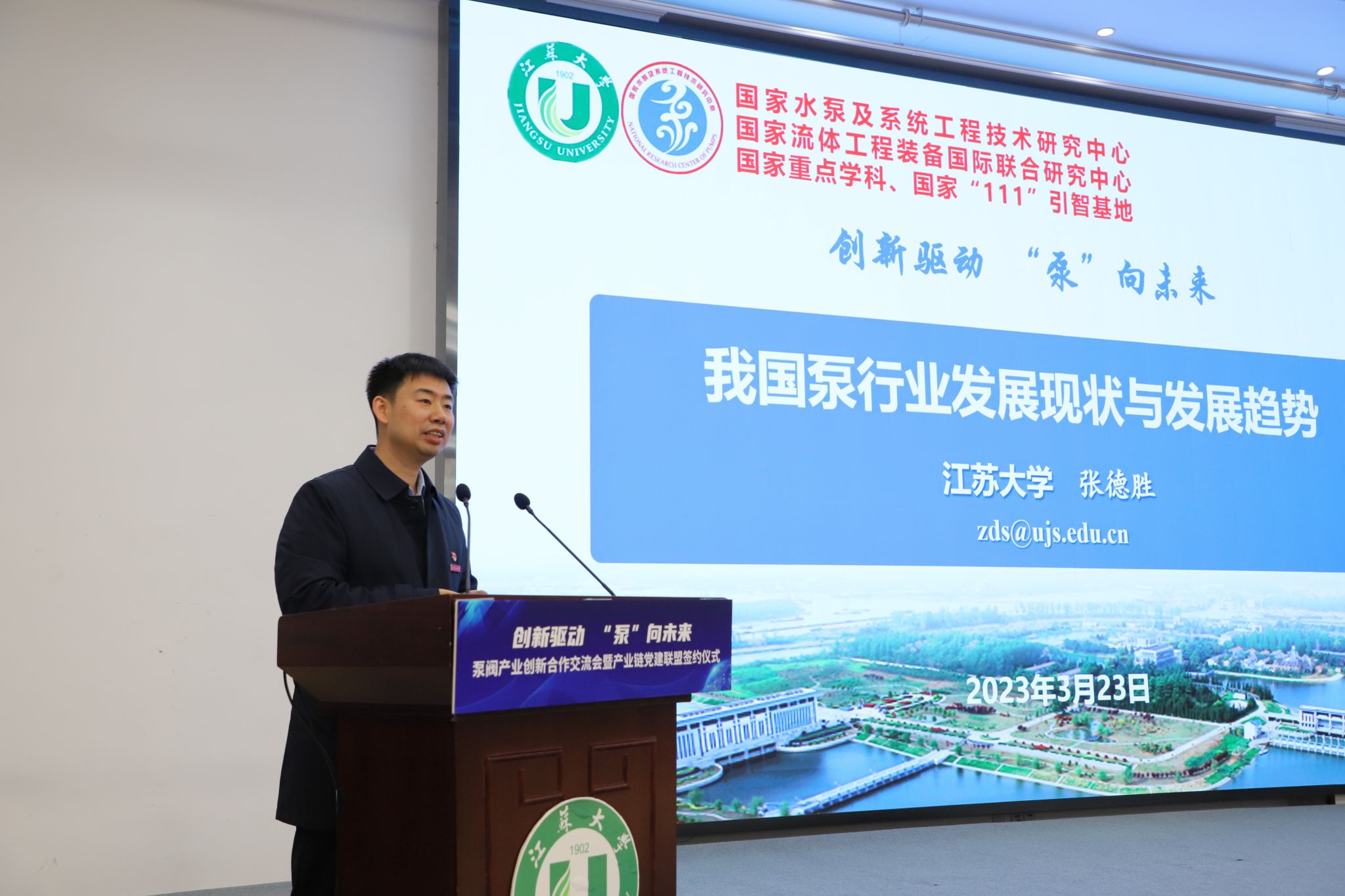 Zhang Yibin introduced the significant scientific research achievements and transfer and transformation situation of our university in the fields of pumps and valves, automobiles, agricultural machinery, and other areas. Peng Guangjie reported on the innovative achievements of the Fluid Center in the direction of major national strategic projects such as the South-to-North Water Diversion, petrochemicals, and water-saving irrigation. He looked forward to further strengthening cooperation between the university and the local area, and transforming scientific research achievements into local industrial advantages. Wang Wei introduced the current development status of the Jingjiang pump and valve industry, hoping that the university and the local area could complement each other's strengths, cooperate for mutual benefit, further coordinate political, industrial, academic, research, and application resources, and promote the innovative development of the Jingjiang pump and valve industry. Zhang Desheng gave a keynote report on the current development status and trends of China's pump industry, introducing the industrial layout, technical routes, revenue and profit of key pump enterprises at home and abroad. He hoped that entrepreneurs could seize the opportunity of the national strategic transformation period, combine the characteristics of the Jingjiang pump and valve industry, and develop specialized, refined, special, and new types of enterprises.