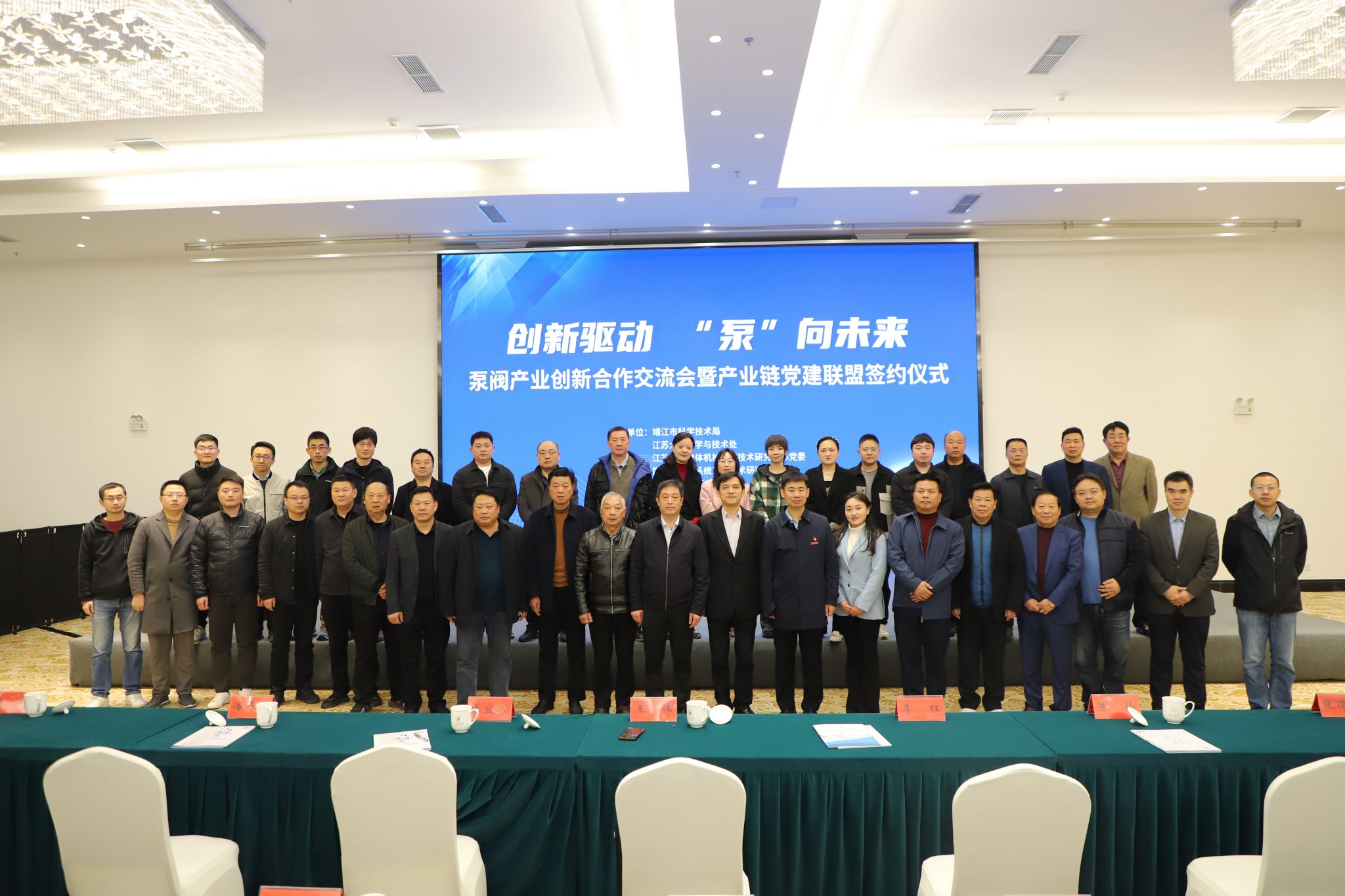 On March 23rd, our university held the "Innovation-Driven, Pumping Towards the Future" Pump and Valve Industry Innovation Cooperation and Party Building Alliance Signing and Exchange Event with Jingjiang Science and Technology Bureau and Jingjiang Pump and Valve Industry Association. Li Hong, member of the Party Committee and Vice President of Jiangsu University, Chen Wei, Deputy Minister of the Party Committee Organization Department, Zhang Yibin, Deputy Director of the University Science and Technology Department, Zhang Desheng, Secretary of the Party Committee of the Fluid Center, Peng Guangjie, Deputy Director of the Center, Wang Wei, Secretary of the Party Group and Director of the Jingjiang Science and Technology Bureau, Pan Cungen, Secretary General of the Taizhou Pump and Valve Industry Technology Innovation Strategic Alliance, and leaders of relevant enterprises in Jingjiang attended the meeting. The meeting was chaired by Yang Liu, Deputy Director of the Jingjiang Science and Technology Bureau.