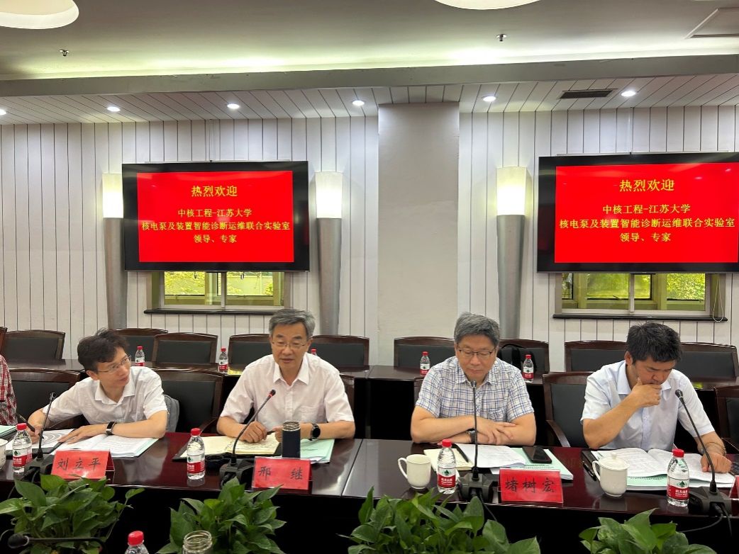 On June 18, the fifth committee meeting of the CNNC-Jiangsu University "Nuclear Power Pump and Device Intelligent Diagnosis and Operation Joint Laboratory" was held in Zhenjiang, Jiangsu. Attendees included Xing Ji, Chief Expert of CNNC; Du Shuhong, Deputy Chief Engineer of CNNC Engineering; Liu Liping, Director of the Science and Technology Department; Song Jianjun, Deputy Director of the Beijing Nuclear Engineering Research and Design Institute; Bai Wei, Director of the Public Systems Department; Qu Changming, Deputy Director of the Systems and Layout Department; Zhang Rongyong, Director of the Cold Source Center; Xing Weihong, President of Jiangsu University; Li Hong, Vice President; Yuan Shouqi, Director of the National Research Center of Pumps; Director Yuan Jianping and relevant department leaders and faculty members of Research Center of Fluid Machinery Engineering and Technology. The meeting was chaired by Vice President Li Hong.