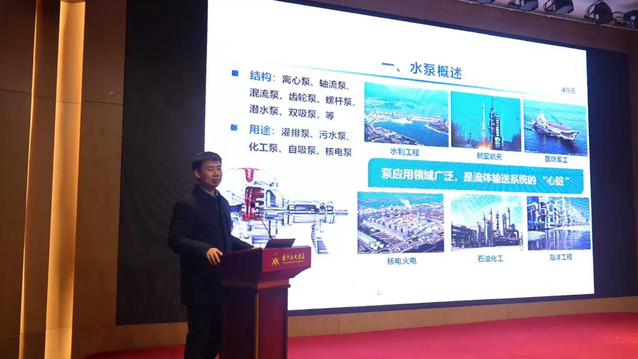 Zhu Yong presented a report titled "Applications and Development Trends of Hydraulic Transmission Technology," introducing the application fields of hydraulic transmission technologies, their development overview, global and domestic industrial layouts of key enterprises, and industry trends. Zhu emphasized the importance of leveraging complementary advantages between universities and local industries to foster collaborative innovation and mutual benefits. He called for strengthening multi-dimensional collaborations among government, industry, academia, research, and application to transform scientific research into local industrial advantages, thereby supporting the high-quality development of Jingjiang’s pump and valve industry.