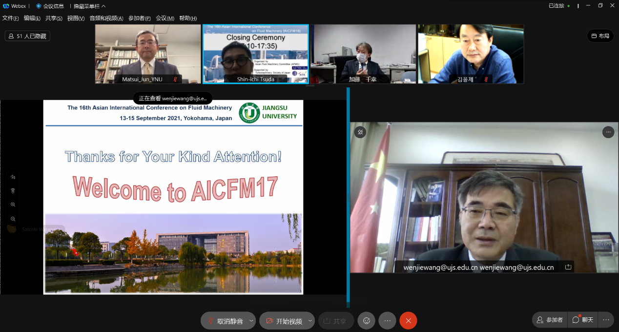 At the closing ceremony, the Asian Fluid Machinery Committee decided that AICFM17 would be jointly organized by UJS and China Society of Engineering Thermophysics in 2023. Prof. Yuan introduced the preparatory plan of the conference.
