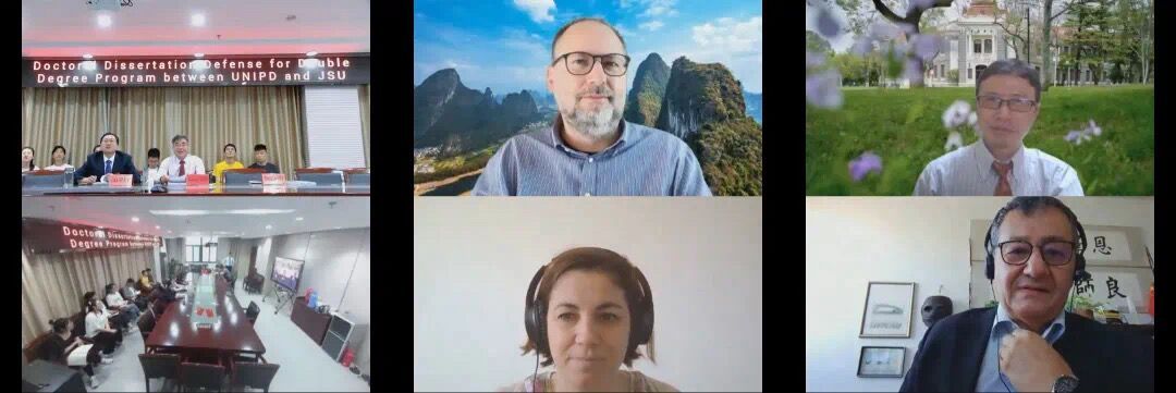 On May 30, the double doctorate dissertation defense meeting of postgraduate Yin Tingyun was held by the combination of online and offline. According to the cooperation agreement signed by the two universities, the defense committee is composed of experts from both China and Italy. Prof. Luo Xianwu of Tsinghua University served as the chairman of the Defense Committee. The other members of the Defense Committee are Prof. Ernesto Benini and Prof. Giovanna Cavazzini of Università di Padova, Prof. Pei Ji of Jiangsu University. As the supervisors of Yin Tingyun, Secretary of the Party Committee Prof. Yuan Shouqi and Prof. Giorgio Pavesi of UNIPD attended the meeting.