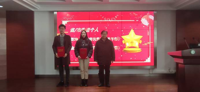 连成奖学金颁奖后,刘建瑞、陆伟刚和张金凤分别为省/市先进个人、校级先进个人和先进班集体/党支部代表颁奖。