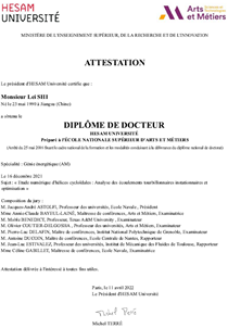 2021年12月16号,石磊博士在法国巴黎高科ENSAM通过博士论文答辩,并取得法国博士学位。答辩委员会由美国德克萨斯农工大学Moble Benedict教授、法国海军学校Jacques-André Astolfi教授、法国图卢兹流体力学研究所Jean-Luc Estivalèzes教授、法国国立高等工程技术学校/美国弗吉尼亚理工大学Olivier Coutier-Delgosha教授、法国南特中央理工学校Antoine Ducoin教授、法国国立高等工程技术学校Annie-Claude Bayeul-Lainé教授、法国海军学校Céline Gabillet教授以及法国格勒诺布尔大学Pierre-Luc Delafin教授组成。答辩会上,石磊针对博士论文工作 “Numerical study of cycloidal propellers: Analysis of unsteady vortical flows and optimization”进行了汇报,得到了答辩委员会专家的一致认可。阐明了反向振荡翼型表面的转捩特性,揭示了不同参数和不同工况下摆线桨内流诱导性能变化的机理,相关成果发表于Energy Conversion and Management、Ocean Engineering、Journal of Fluids and Structures、European Journal of Mechanics B-Fluids、Applied Mathematical Modelling等国际知名期刊。